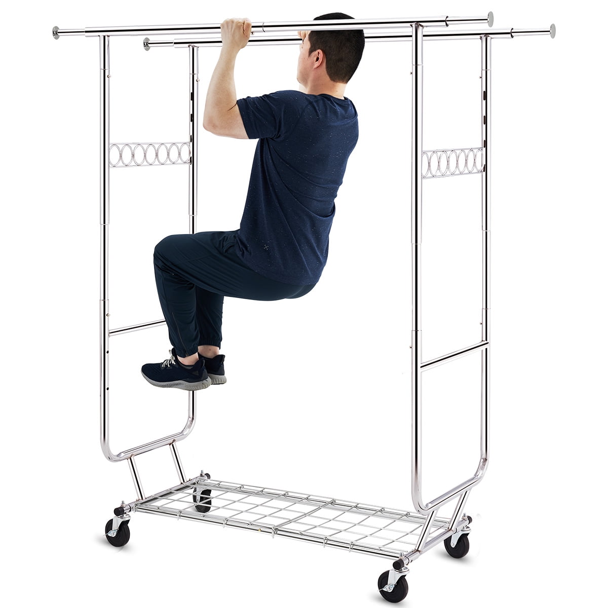 12 locations for fast delivery of clothes racks. Or, keep them in a storage closet to hold your employees' winter coats, purses, bags, or uniforms. If your closet is cramped or you need a place for guest's coats, our chrome metal folding commercial clothes rack fits the bill. The smooth rolling casters allow the rack moves easily from room to room. Org heavy duty commercial garment rack rolling collapsible clothing shelf wheels. Capable of holding an entire wardrobe on its 60 inch wide chrome rod, our rack can extend from 54 inch up to 74 inch tall making plenty of room for your long coats or dresses. Includes 3 storage shelves and 2 hanging racks. Whether you need extra clothing storage in a small closet or simply want to add a practical coat rack near a door, we've got a solution for you. Order by 6 pm for same day shipping. H) this handy, portable chrome garment rack this handy, portable chrome garment rack is your very own, personal wardrobe closet that you can take anywhere with you. Shop our best selection of commercial clothes racks to simplify your space and declutter your home. Our heavy duty garment racks are truly professional grade quality and built to last. Greenstell clothes rack, industrial pipe clothing garment rack on wheels with brakes, commercial grade heavy duty sturdy metal rolling clothing coat rack holder 2 packs (59x24x63 inch) 4.6 out of 5 stars.